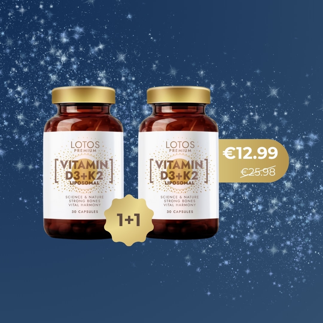 LOTOS PREMIUM Liposomālais Vitamīns D3 + K2 sastāvā esošais D vitamīns palīdz uzturēt kaulu veselību un normālu muskuļu darbību, kā arī veicina normālu imūnsistēmas darbību. K vitamīns veicina normālu asinsreci.