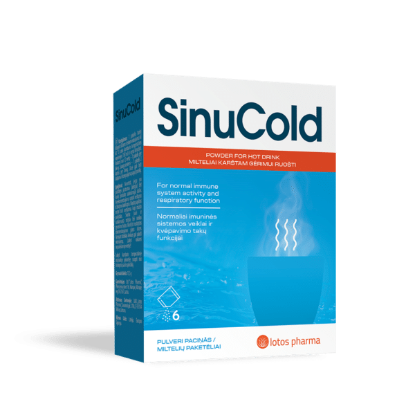 Uztura bagātinātājs ar saldinātājiem. SinuCold palīdz elpceļu veselībai saaukstēšanās laikā. Sastāvā esošais melnā plūškoka augļu ekstrakts, cinks un C vitamīns veicina normālu imūnsistēmas darbību. Cinks un C vitamīns arī veicina šūnu aizsardzību pret oksidatīvo stresu. Altejas sakņu ekstrakts palīdz atvieglot elpošanu, sniedz mīkstinošu efektu kaklā un elpceļos, palīdz nomierināt un mīkstināt iekaisušu elpceļu gļotādu un mazināt kairinājumu kaklā. Ceļtekas lapu ekstrakts nomierina mutes un rīkles gļotādu, atvieglo kakla un rīkles kairinājumu, nomierinoši un labvēlīgi iedarbojas uz kaklu, rīkli un balssaitēm.